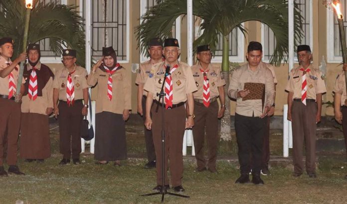 Kendari, Datasultra.com- Sekda Sultra, Asrun Lio selaku Ketua Kwartir Daerah (Kwarda) Gerakan Pramuka Sultra masa bakti 2024-2029, memimpin Upacara Ulang Janji dan Renungan Malam dalam rangka Hari Pramuka ke-63 di Pelataran Kantor Kwartir Daerah Gerakan Pramuka Sultra, Selasa 13 Agustus 2024.