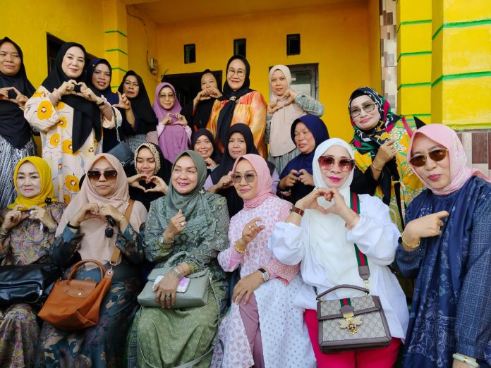 Kunjungan Tina disambut hangat oleh para anggota majelis taklim dengan lantunan salawat dan sesi foto bersama.