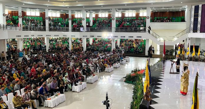 Acara yang berlangsung meriah ini dibuka secara simbolik oleh Rektor UHO, Prof. Dr. Muhammad Zamrun F, S.Si., M.Si., M.Sc., dengan pemukulan gong, didampingi oleh Jobih, S.Ap dari Direktorat Pembelajaran Kemahasiswaan Kemendikbudristek, serta pimpinan senat dan panitia.