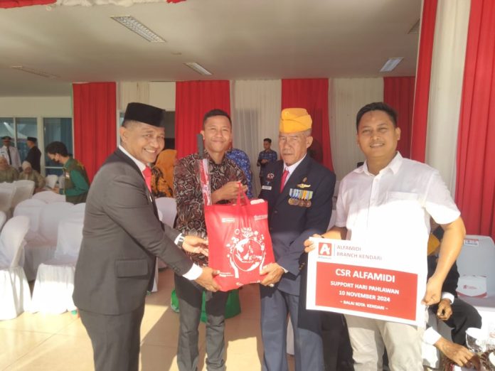 Kendari, Datasultra.com- Dalam rangka memperingati Hari Pahlawan, PT Midi Utama Indonesia Tbk atau Alfamidi Branch Kendari bersama Pemerintah Kota Kendari menyerahkan bantuan paket sembako kepada para veteran dan keluarga veteran sebagai bentuk penghargaan atas perjuangan mereka demi kemerdekaan NKRI.