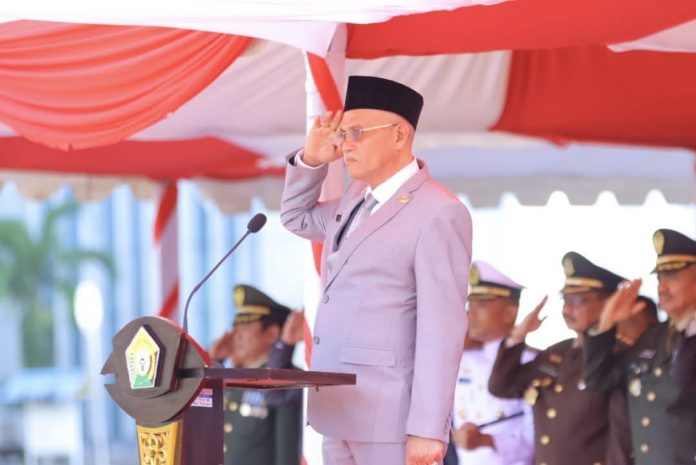 Kendari, Datasultra.com- Sekretaris Daerah (Sekda) Provinsi Sulawesi Tenggara (Sultra), Asrun Lio bertindak sebagai inspektur upacara dalam Peringatan Hari Bela Negara (HBN) ke-76 yang berlangsung di Lapangan Upacara Kantor Gubernur Sultra, Selasa 19 Desember 2024.