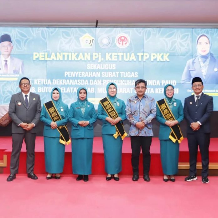 Penjabat (Pj) Ketua Tim Penggerak Pemberdayaan dan Kesejahteraan Keluarga (TP PKK) Provinsi Sulawesi Tenggara, Dra. Hj. Wa Ode Munanah Asrun Lio, secara resmi melantik tiga Pj Ketua TP PKK kabupaten/kota di di Aula Merah Putih Rumah Jabatan (Rujab) Gubernur Sultra, Selasa 24 Desember 2024.
