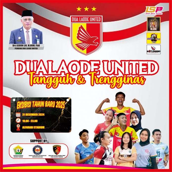 Dua Laode Voli Club, klub bola voli terkemuka asal Sulawesi Tenggara, akan menggelar pertandingan eksibisi yang akan berlangsung di Lapangan Al Farabi, Konawe Selatan, Selasa 31 Desember 2024, pukul 19.00 Wita.