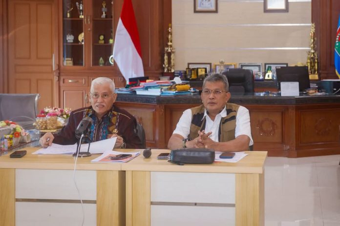 Kendari, Datasultra.com- Sekretaris Daerah (Sekda) Provinsi Sulawesi Tenggara (Sultra), Drs. H. Asrun Lio, M.Hum., PhD, memimpin rapat koordinasi (Rakor) untuk membahas status kebencanaan di beberapa daerah yang terdampak bencana di Sultra.