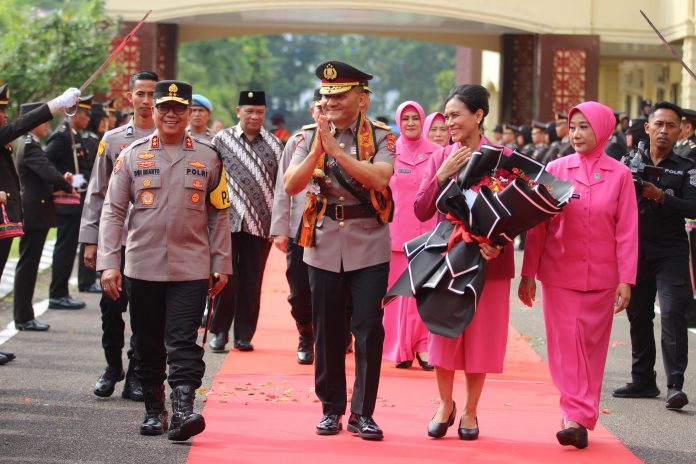 Upacara tradisi ini menjadi momen perpisahan yang penuh haru sekaligus penghormatan atas pengabdian panjang Brigjen Pol Tumpal Damayanus dalam Korps bhayangkara. (Ld)