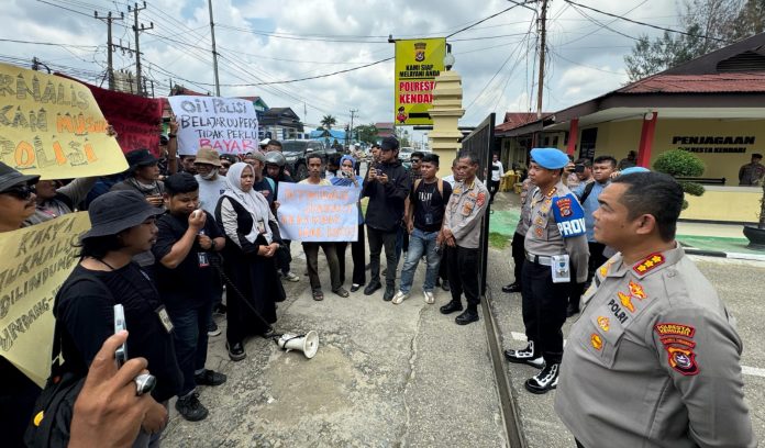 Aksi demonstrasi yang berlangsung sekitar 1 jam direspon oleh Kapolresta Kendari, Kombes Pol Eko Widiantoro. Perwira tiga bunga dipundak ini langsung menemui massa pengunjuk rasa.