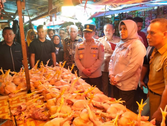 Kendari, Datasultra.com – Jelang bulan suci ramadan, Sekretaris Daerah (Sekda) Provinsi Sultra, Asrun Lio bersama bersama Kapolda Sultra, Irjen Pol Dwi Irianto, Wakil Wali Kota Kendari, Sudirman serta Tim Pengendalian Inflasi Daerah (TPID) Provinsi di Pasar Sentral Kota Kendari melakukan inspeksi mendadak (Sidak) di Pasar Sentral Kota Kendari dalam rangka memantau harga bahan pokok.