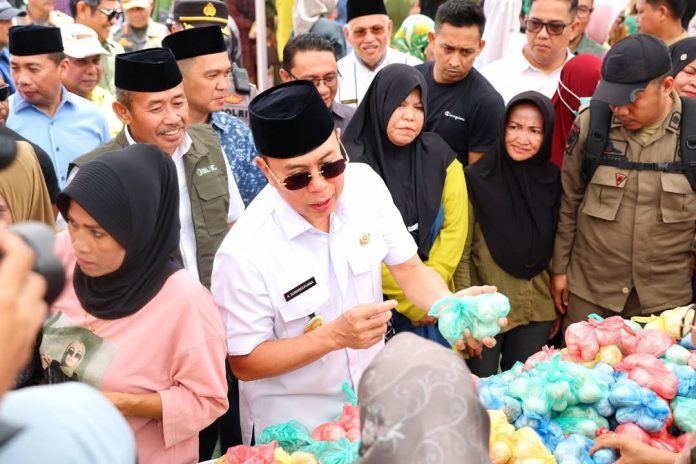 Dalam kesempatan tersebut, Gubernur ASR meninjau langsung ketersediaan bahan pokok yang dijual dengan harga terjangkau.