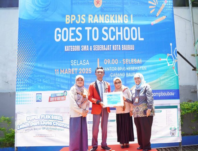 Baubau, Datasultra.com– BPJS Kesehatan Cabang Baubau menggelar program “Ranking 1 Goes to School” dengan mengundang sepuluh Sekolah Menengah Atas (SMA) dan Sekolah Menengah Kejuruan (SMK), Selasa 11 Maret 2025.