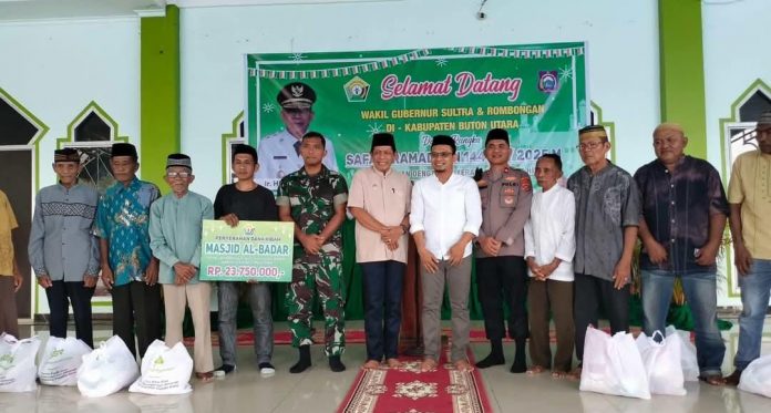 Wakil Gubernur juga menyerahkan dana hibah sebesar Rp 23.750.000 untuk Masjid Al-Badar di Desa Lapandewa, Kecamatan Kulisusu Barat, melalui program ASR Berbagi. Dana tersebut akan digunakan untuk pengembangan rumah ibadah tersebut.