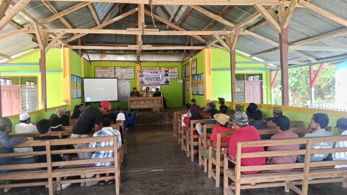Suasana kegiatan pembentukan Koperasi Desa Merah Putih (KDMP) di Balai Desa Kombikuno, Kecamatan Napano Kusambi, Muna Barat, pada Minggu, 18 Mei 2025, yang dihadiri oleh perangkat desa, tokoh masyarakat, pelaku UMKM, dan perwakilan Dinas Koperasi dan UMKM.