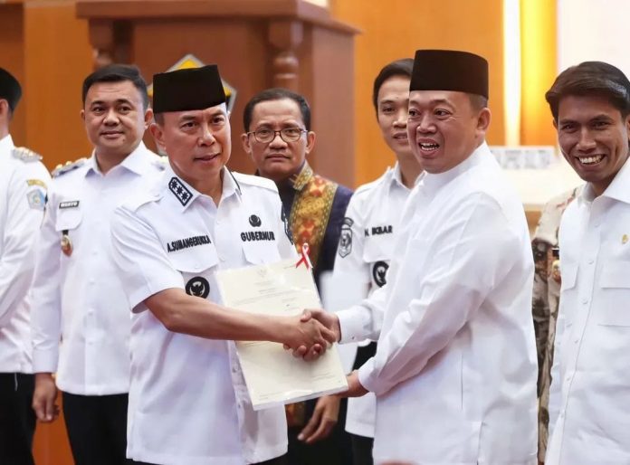 Gubernur Sulawesi Tenggara, Mayjen TNI (Purn) Andi Sumangerukka, menyambut kunjungan Menteri Agraria dan Tata Ruang/Kepala Badan Pertanahan Nasional (ATR/BPN) RI, Nusron Wahid, dalam agenda Rapat Koordinasi Pertanahan dan Penataan Ruang di Ruang Pola Kantor Gubernur, Rabu 28 Mei 2025.