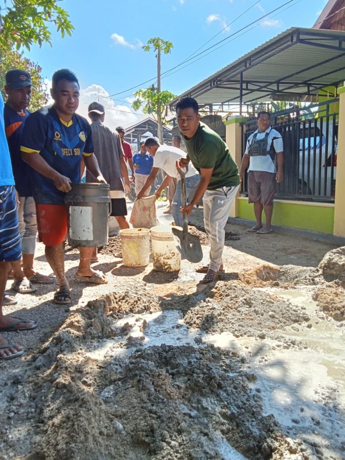 Tanpa mengandalkan anggaran pemerintah, warga bergantian membawa bahan, mencampur semen, hingga mengecor jalan demi kenyamanan dan keselamatan bersama.