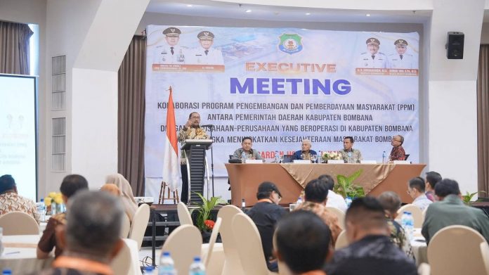 Mewakili Gubernur Sulawesi Tenggara Mayjen TNI (Purn) Andi Sumangerukka, Sekretaris Daerah (Sekda) Provinsi Sultra Drs. H. Asrun Lio, M.Hum., Ph.D secara resmi membuka Executive Meeting dalam rangka peningkatan kesejahteraan masyarakat melalui Program Pengembangan dan Pemberdayaan Masyarakat (PPM) Kabupaten Bombana, Kamis 3 Juli 2025.