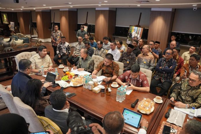 Gubernur Sulawesi Tenggara (Sultra), Mayjen TNI (Purn) Andi Sumangerukka, memimpin rombongan kepala daerah se-Sultra dalam audiensi bersama Menteri Perumahan dan Kawasan Permukiman (PKP), Maruarar Sirait di Wisma Mandiri II, Jakarta, Kamis malam 17 Juli 2025.
