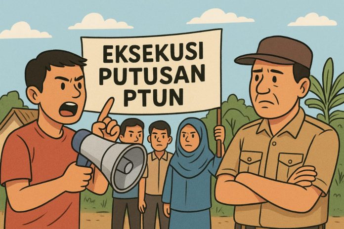 “Kasus ini sudah jelas diputuskan pengadilan. Namun sampai hari ini, meski surat eksekusi dari PTUN Kendari sudah dikirim sejak 22 April 2025, kepala desa belum juga menjalankan kewajibannya,” tegas Dainus, Senin 8 September 2025.