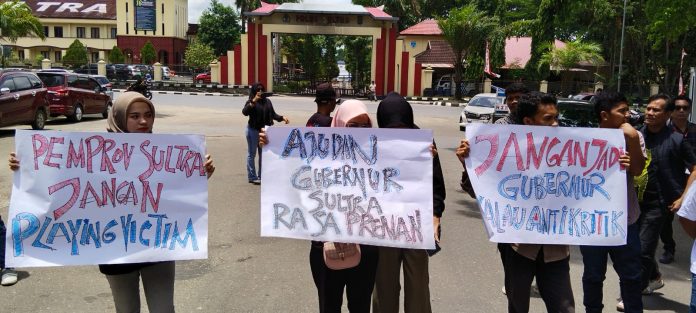 Aksi damai ini, para jurnalis membawa poster bertuliskan “Ajudan Gubernur Sultra Rasa Preman”. Selain itu, “Jangan Jadi Gubernur Kalau Anti Kritik”. Kemudian, “Pemprov Sultra Jangan Playing Victim”.