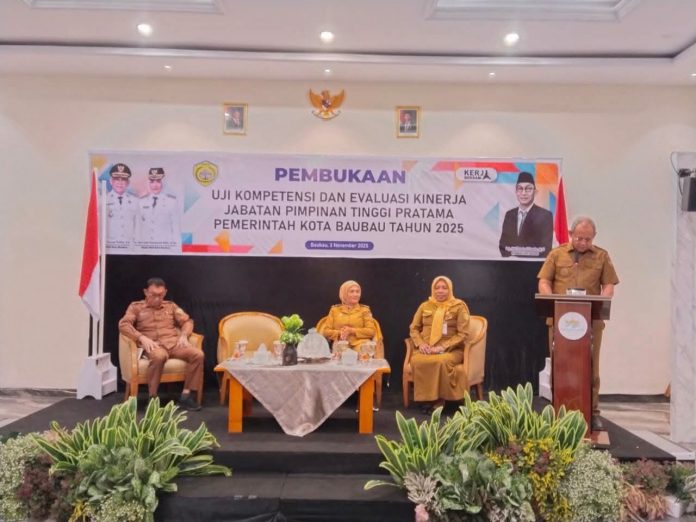 Baubau, Datasultra.com — Pemerintah Kota (Pemkot) Baubau di bawah kepemimpinan Wali Kota H. Yusran Fahim, SE dan Wakil Wali Kota Ir. Wa Ode Hamsinah Bolu, M.Sc, melaksanakan uji kompetensi dan evaluasi kinerja Jabatan Pimpinan Tinggi (JPT) Pratama di lingkungan Pemkot Baubau.
