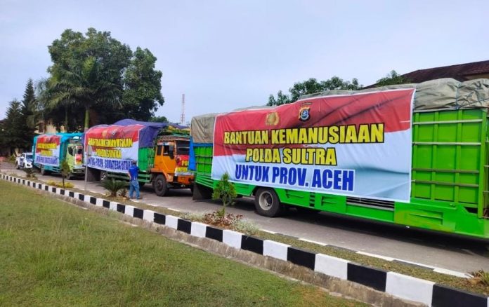 Kendari, Datasultra.com – Kepolisian Daerah (Polda) Sulawesi Tenggara (Sultra) mengirimkan bantuan kemanusiaan untuk korban banjir dan tanah longsor di Provinsi Aceh, Sumatera Utara (Sumut), dan Sumatera Barat (Sumbar). Bantuan tersebut berupa sembako, pop mie, selimut, kasur.