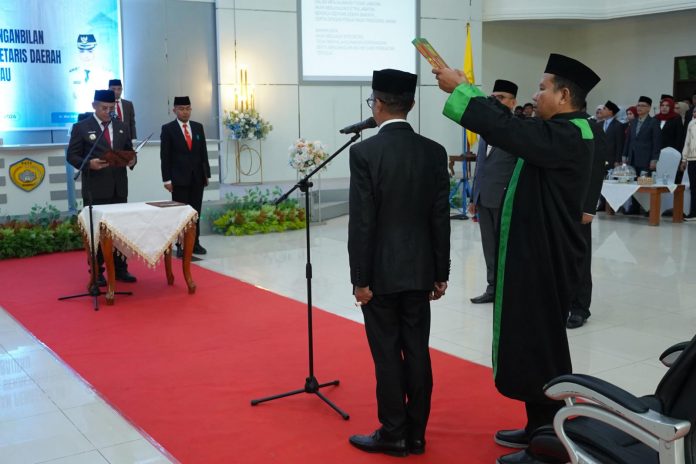 La Ode Darussalam, S.Sos., M.Si., resmi dilantik sebagai Sekda Kota Baubau oleh Wali Kota Baubau, H. Yusran Fahim, SE, yang berlangsung di Aula Palagimata Kantor Wali Kota Baubau, Rabu 14 Januari 2026.